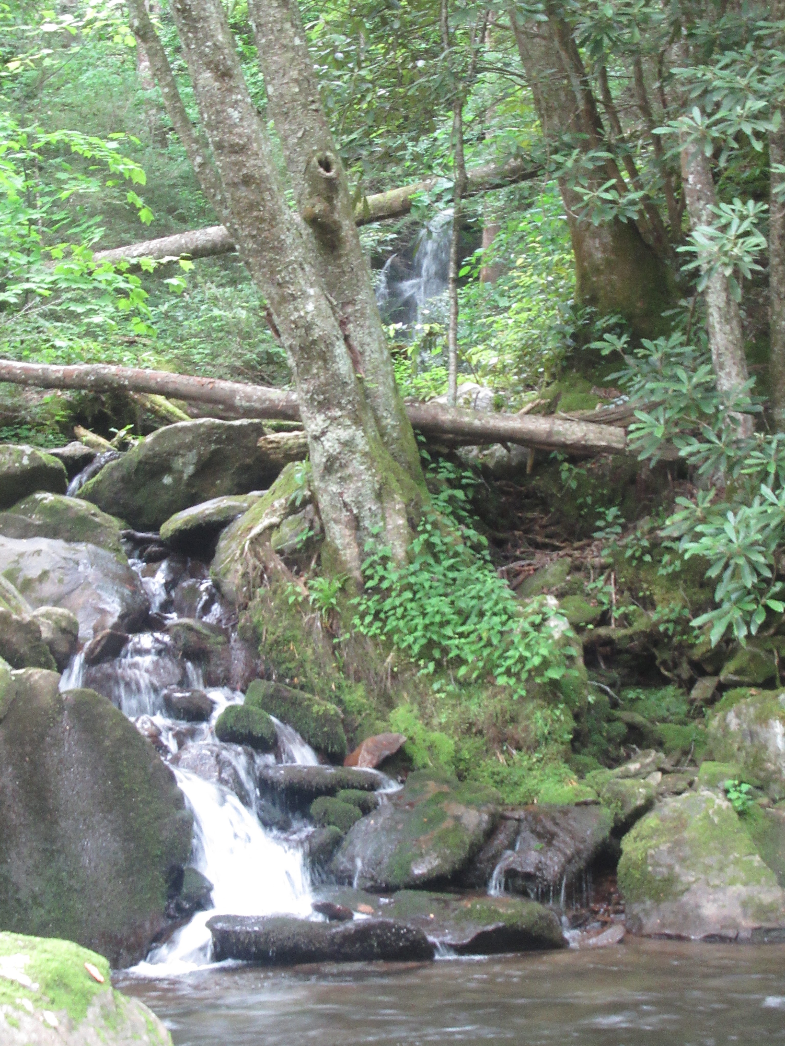 There is a small parking area along Little River Gorge Road with access to Little River near Mannis Falls. The falls are on the opposite side of the creek and the creek was too swift and deep to safely cross without serious risk. However if you know where to look, you can see the falls from the opposite side of the creek.