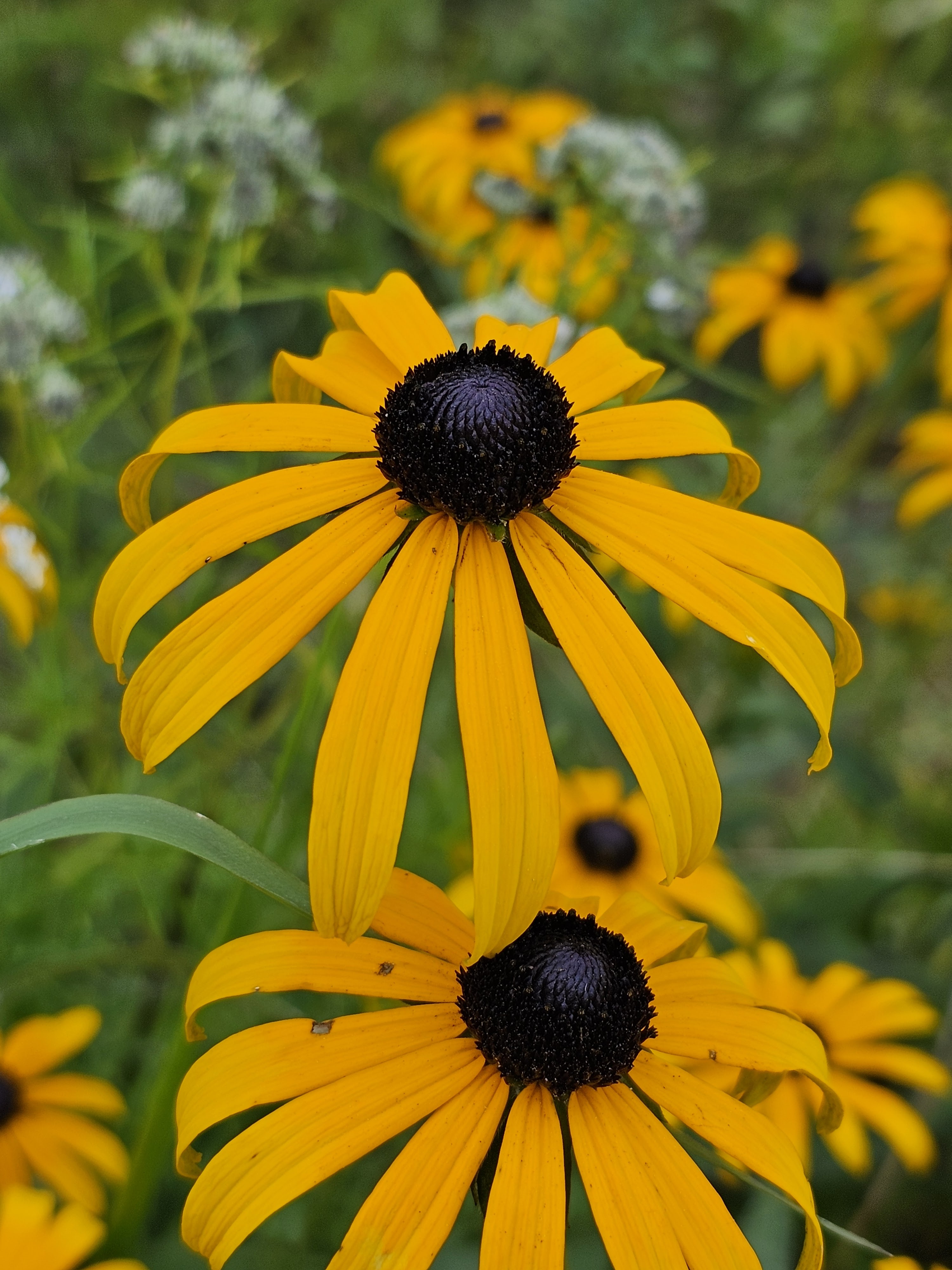 Rudbeckia hirta, commonly called Black-Eyed Susan, is a favorite in gardens, but is also a native wildflower in North America. It is characterized by a 2-3 ft stalk with a bright yellow flower and petals arranged in a ray around a black or brown button. It can be spotted in well drained prairies and can be quite impressive in large colonies. The seed heads of this flower can last well into the winter, providing some interest during that time of the year.